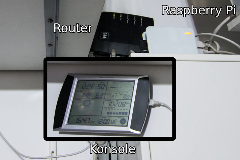 Auf dem Pi war außerdem die mittlerweile nicht mehr weiterentwickelte Software wview installiert. Diese Software bot neben einem passenden Treiber eine ganze Reihe einfach einzurichtender Funktionen für zahlreiche gängige Wetterstationen. Die gelesenen Daten konnten z.B. live geplottet und auf einen FTP-Server hochgeladen oder die Messwerte korrigiert werden. Außerdem lieferte die Software vorgefertigte html-Seiten und ein 5-minütlich aufgelöstes Archiv mit, das per MySQL ausgelesen werden kann.